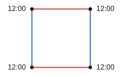 After fixing the clock, I was still thinking about how only some clock hand positions correspond to actual times. This led me to think “a clock is a one-dimensional subgroup of the torus”. Let me explain why.