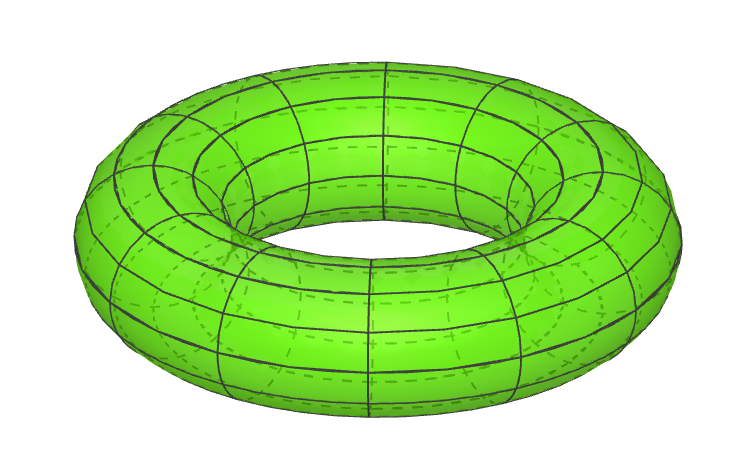 The green surface above is a torus. The black lines aren’t a part of the torus, they are just there to help the visualisation.