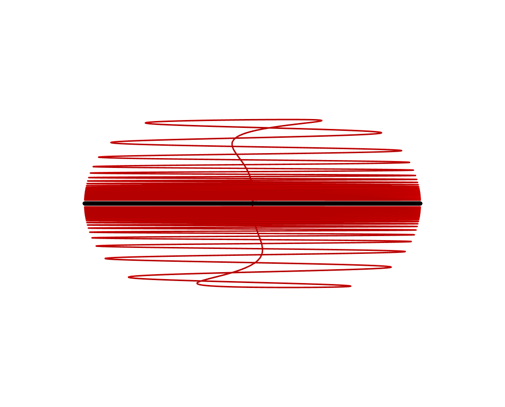 Thus we know that the copy of \(\mathbb{R}\) in must spiral towards the copy of \(S^1\) in \(\sigma(A)\) and that this spiraling must happen as we approach either positive infinity or negative infinity. Thus we can realise \(\sigma(A)\) as the following subset of \(\mathbb{R}^3\) that looks a bit like Christmas tree decoration: